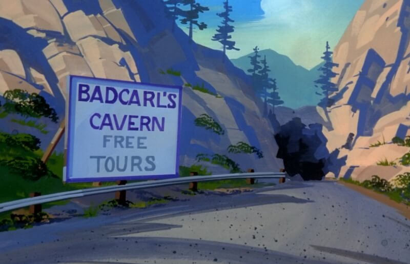 The episode begins at Badcarl’s Cavern, which is a take of Carlsbad Caverns in New Mexico, where the gang are on a free self-guided tour.